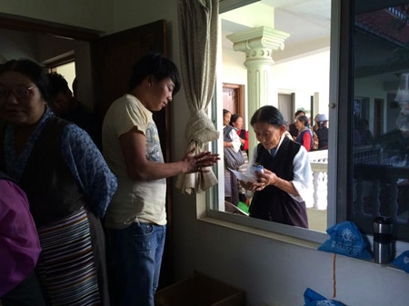 藏醫(yī)藥學不僅是我國民族醫(yī)學的重要組成部分,在毗鄰的喜馬拉雅地區(qū)也廣為流傳,在尼泊爾深受當?shù)匕傩招刨嚒?/SPAN>6月13日,由公司董事長雷菊芳女士帶隊,包括藏醫(yī)及助手等在內(nèi)的醫(yī)療救援小分隊抵達尼泊爾加德滿都,用藏醫(yī)藥為尼泊爾人民提供災后醫(yī)療救助服務(wù)。次日醫(yī)療小分隊即展開了藏醫(yī)義診活動,候診的患者排滿了走廊。截止6月20日,共義診病人700位。本次義診活動還將根據(jù)災區(qū)患者情況持續(xù)進行,我們也將與前方同事保持聯(lián)系、跟進報道。