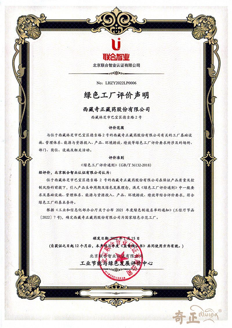 2022年-國(guó)家綠色示范工廠(工信部-林芝廠)