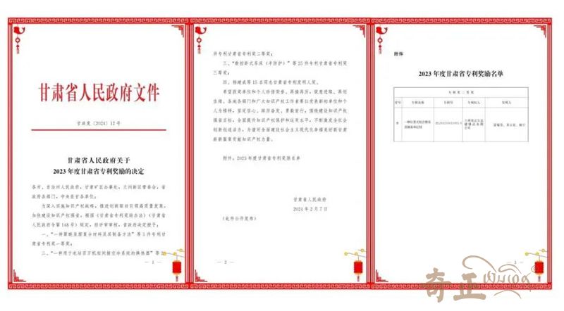 榮獲甘肅省專利獎(jiǎng)二等獎(jiǎng)