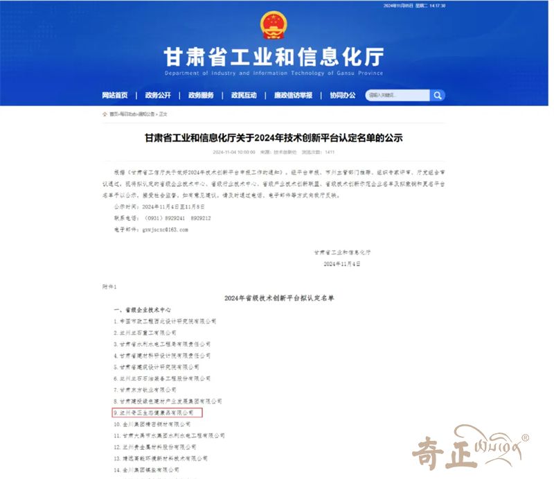 近日,甘肅省工業(yè)和信息化廳公示了2024年技術(shù)創(chuàng)新平臺認(rèn)定名單,全省33家企業(yè)被認(rèn)定為省級企業(yè)技術(shù)中心,蘭州奇正生態(tài)健康品有限公司榜上有名,成功躋身省級企業(yè)技術(shù)中心名錄。