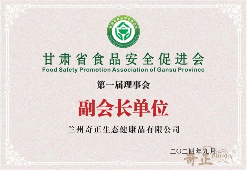 2024年9月6日,甘肅省食品安全促進(jìn)會暨第一次會員大會在蘭州召開,奇正健康入選為“第一屆理事副會長單位”,為落實(shí)食品安全主體責(zé)任,促進(jìn)食品產(chǎn)業(yè)高質(zhì)量發(fā)展貢獻(xiàn)奇正力量。