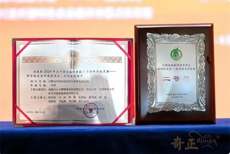 11月3日,以“使命驅(qū)動下的食品科技與發(fā)展”為主題的中國食品科學(xué)技術(shù)學(xué)會第二十一屆年會在重慶召開,本屆年會圍繞我國食品科技與產(chǎn)業(yè)發(fā)展的新變化、新需求、新任務(wù),集結(jié)食品科技力量,貢獻(xiàn)科技智慧。會上,由西藏奇正青稞健康科技有限公司董事長程若瓊主導(dǎo)完成的科技成果《青稞高纖粉的創(chuàng)新性開發(fā)研究及應(yīng)用》,榮獲中國食品科學(xué)技術(shù)學(xué)會2024年度科技進(jìn)步獎二等獎,展現(xiàn)了奇正青稞在食品科技創(chuàng)新領(lǐng)域的卓越成就。