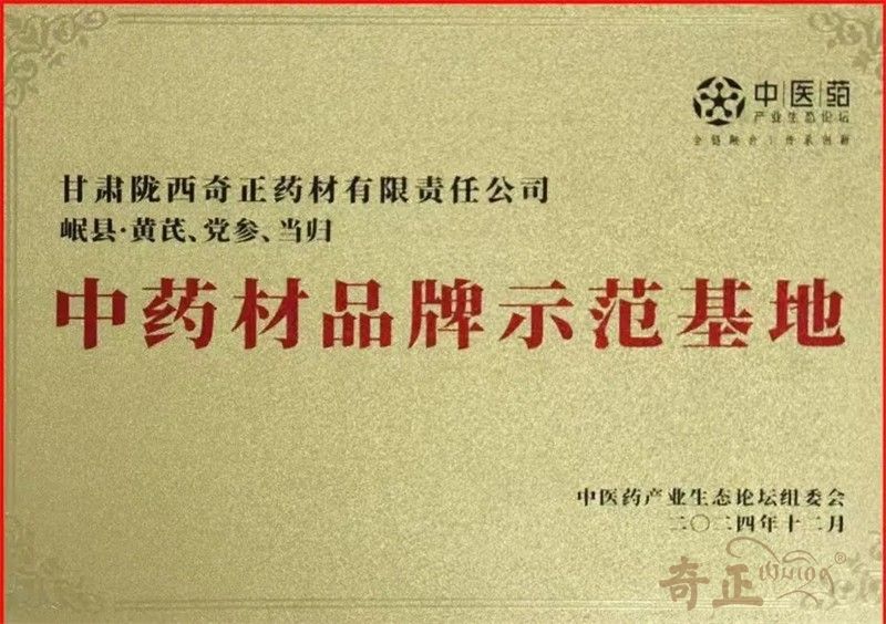 2024年12月15日,第二屆中醫(yī)藥產(chǎn)業(yè)生態(tài)大會(TMEC)在雄安新區(qū)盛大開幕。會議中發(fā)布了“2024年中藥材品牌示范基地”評選結(jié)果,100個中藥材品牌示范基地最終入選,甘肅隴西奇正藥材有限責(zé)任公司榮耀上榜。