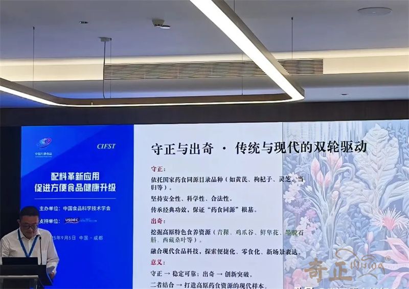 近日,由中國食品科學(xué)技術(shù)學(xué)會(CIFST)主辦的第二十五屆中國方便食品大會在四川成都召開。本屆大會以“韌性成長 向新而行”為主題,通過權(quán)威報(bào)告、行業(yè)對話、創(chuàng)新展示等不同維度,全面解碼方便食品產(chǎn)業(yè)高質(zhì)量發(fā)展的新趨勢、新動能與新路徑。奇正青稞作為青稞產(chǎn)業(yè)龍頭企業(yè),攜旗下產(chǎn)品參會,奇正集團(tuán)總經(jīng)理、奇正青稞董事長程若瓊做了題為《 守正出奇--以新質(zhì)生產(chǎn)力開拓高原的藥食寶藏 》為主題的專題報(bào)告。