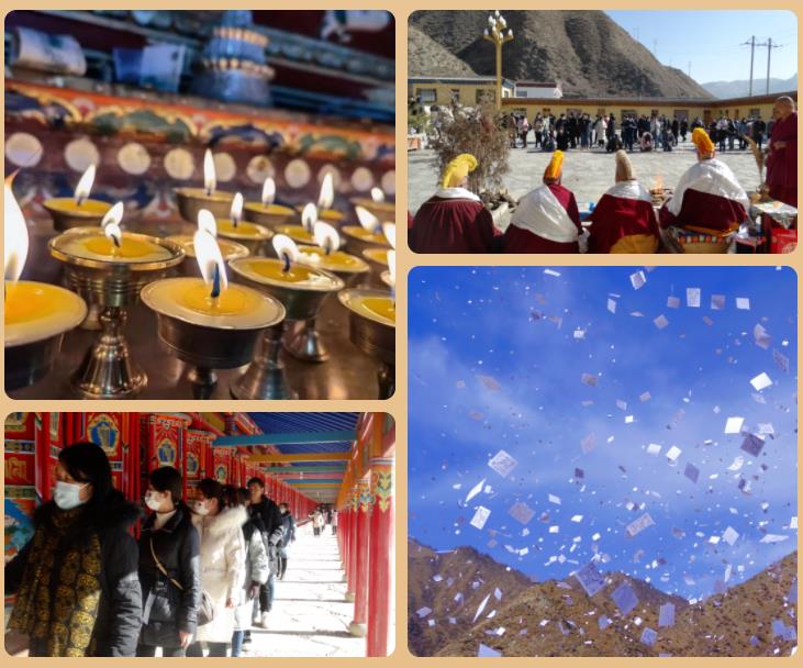 轉(zhuǎn)經(jīng)、點(diǎn)燈、火供、煨桑、揚(yáng)風(fēng)馬……一盞盞酥油燈,閃爍著金色的光芒,點(diǎn)亮了超然的虔誠(chéng)和信仰。愿智慧光明遍照所有世界的一切眾生,令其不再沉溺無明黑暗,愿他們的心燈開啟,愿整個(gè)世間沐浴在無量光明之中。