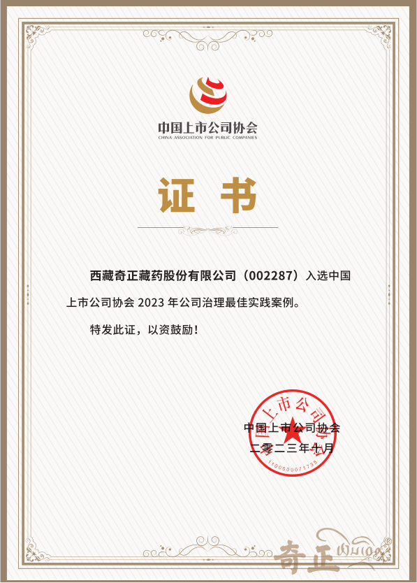 近日,“中國上市公司協(xié)會2023年公司治理最佳實踐案例”評選結(jié)果揭曉,奇正藏藥通過嚴格的遴選和評審程序,從5000多家A股上市公司中脫穎而出,入選最佳實踐案例,并被收錄至《中國上市公司治理報告》。