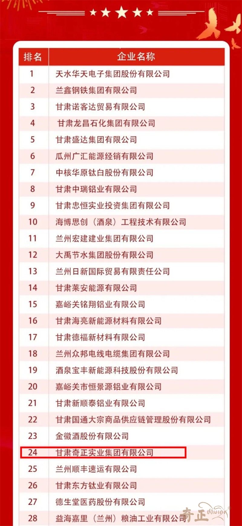 甘肅奇正實(shí)業(yè)集團(tuán)有限公司榮登榜單